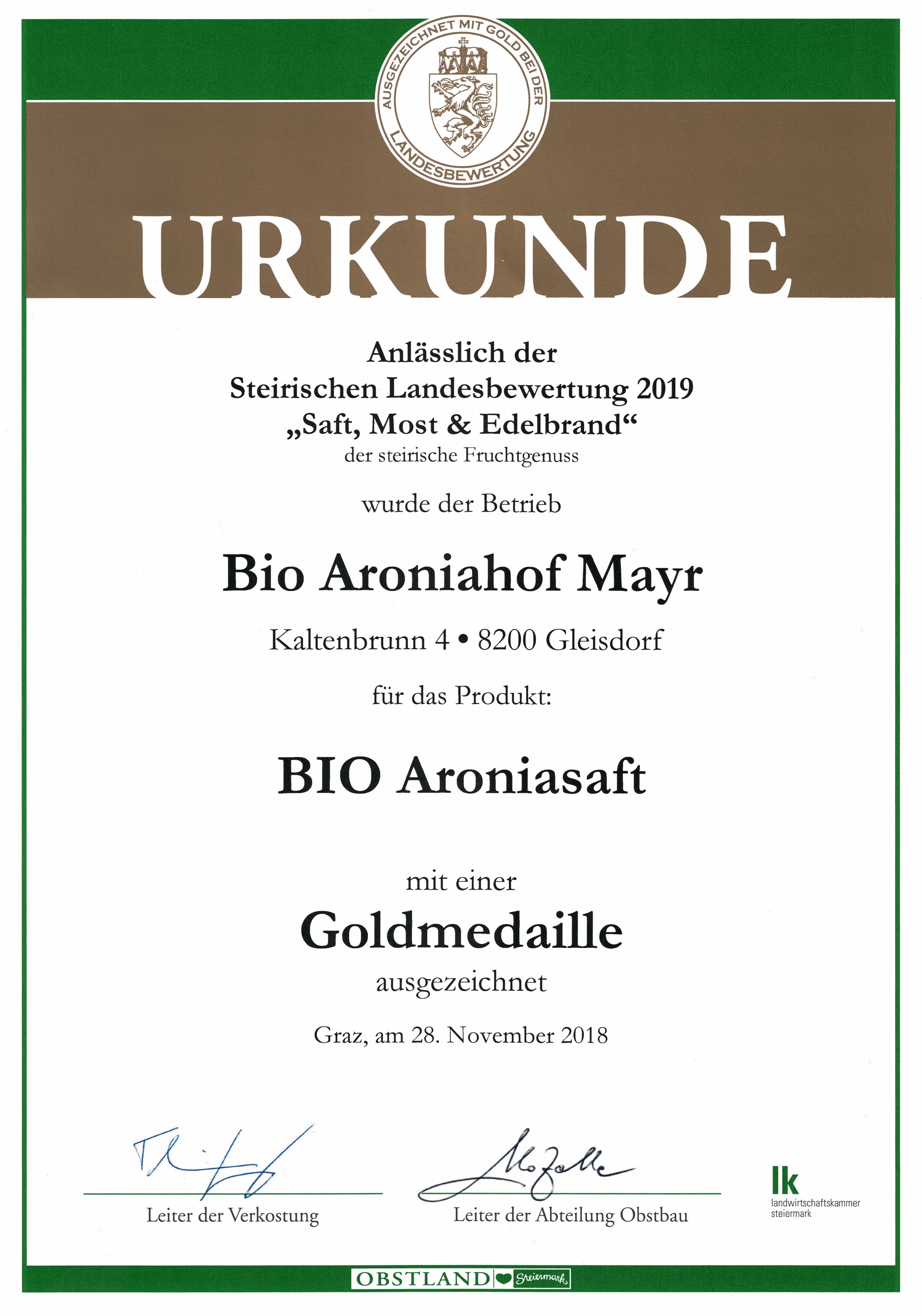 dürfen wir voller Stolz bekannt geben, dass wir für unsere BIO Aroniasäfte mit einer